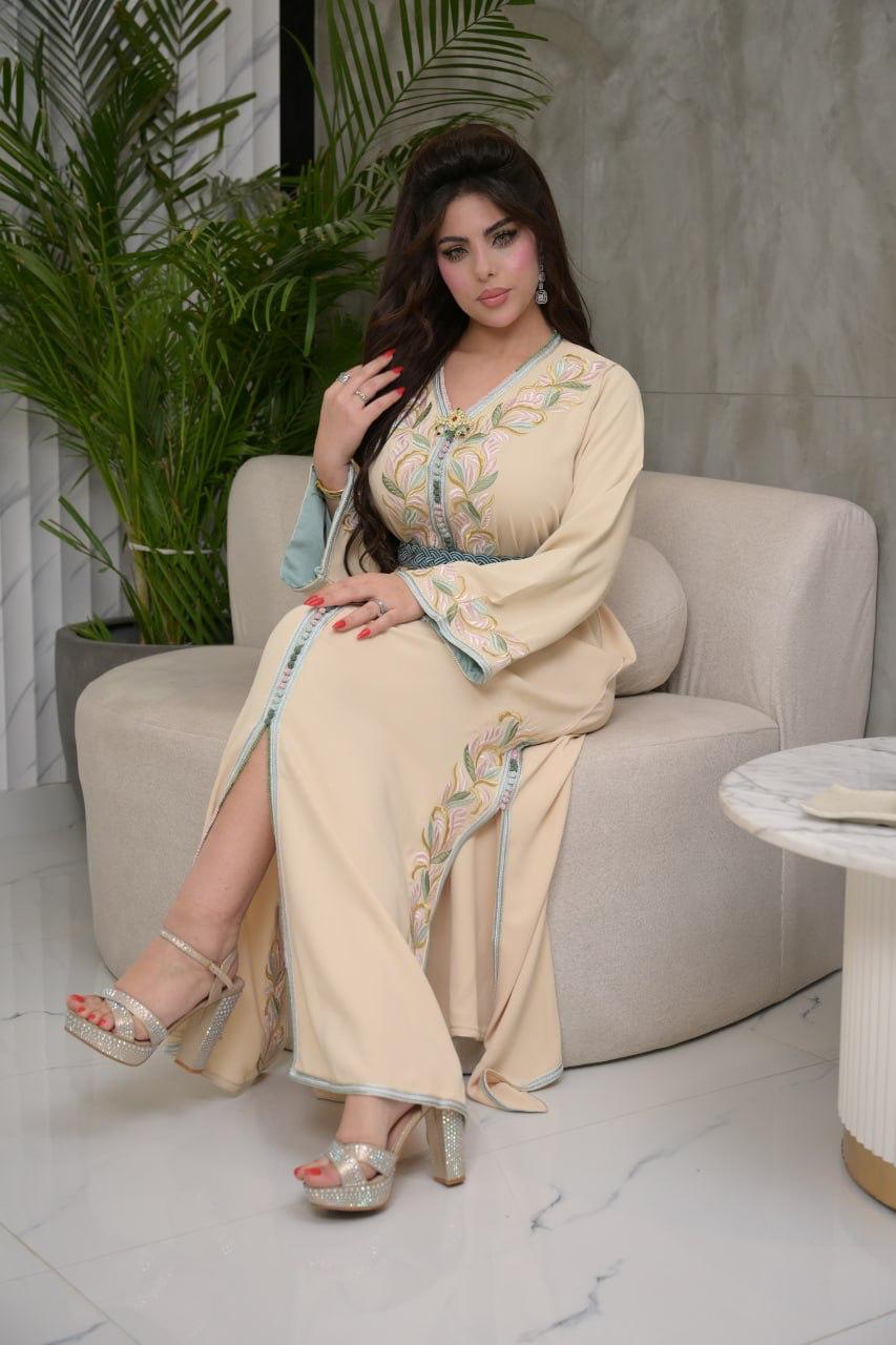 قفطان مغربي مطرز ومبطن بالكم